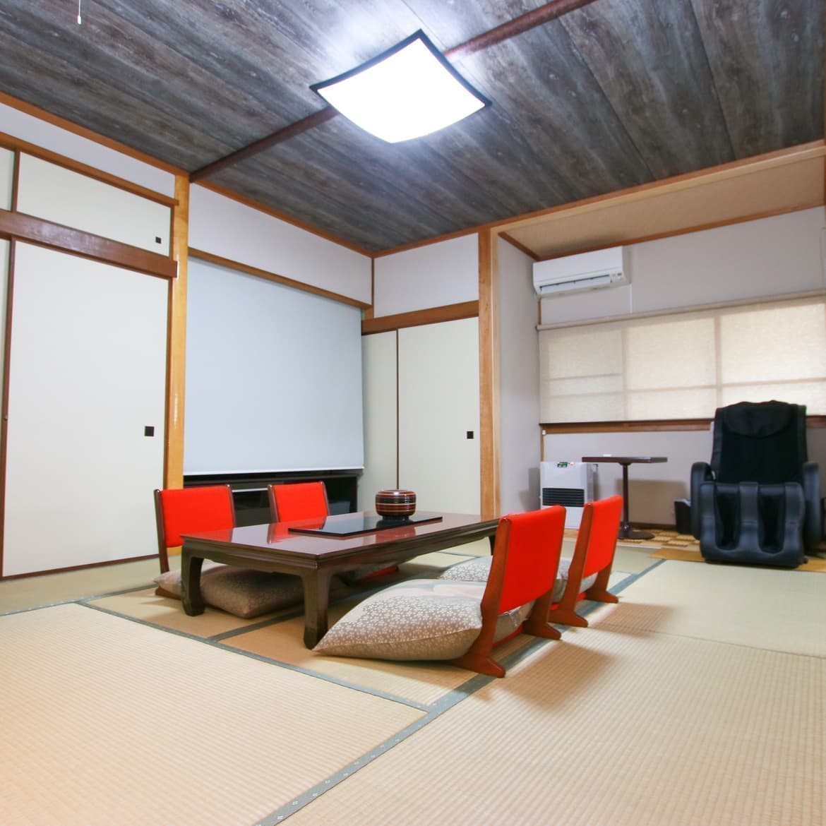 | 館内設備 | 寝室×2/和室/ダイニング/家庭内風呂/ランドリー/無料Wi-Fi完備/大型スクリーン/プロジェクター/マッサージチェア |