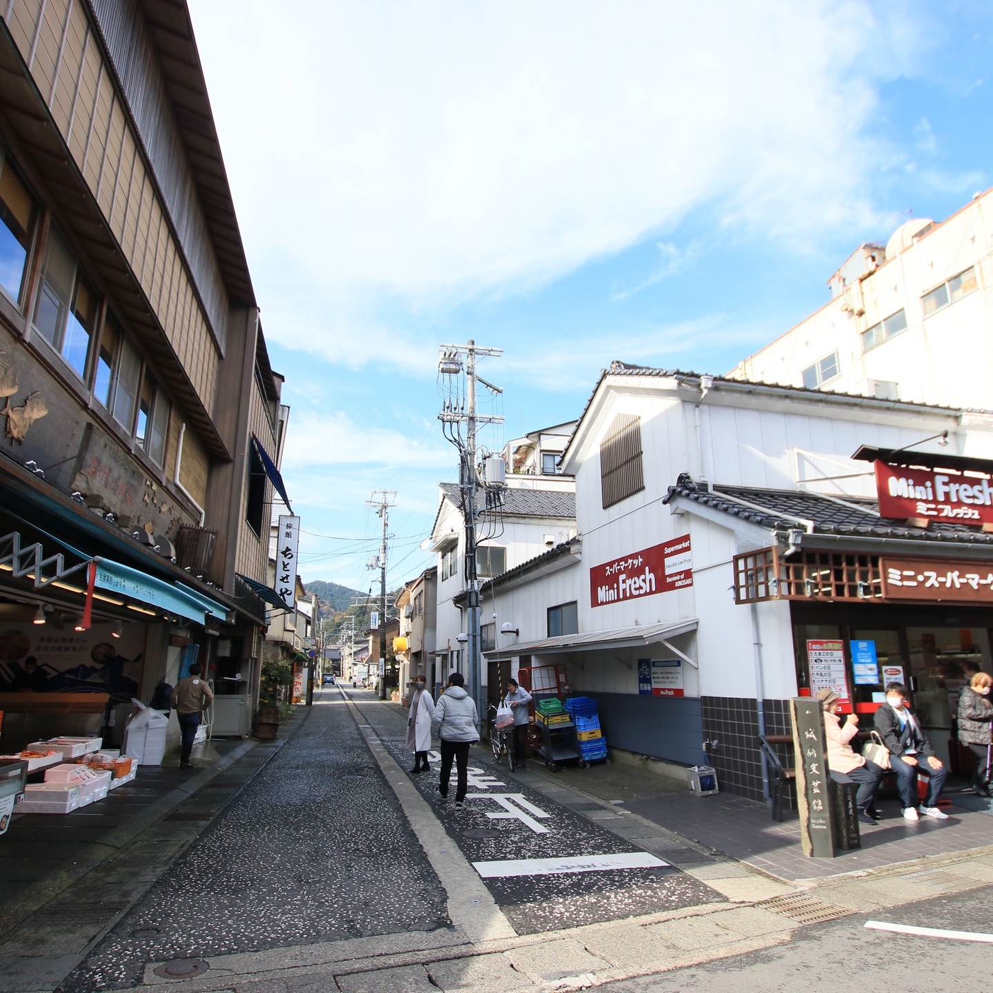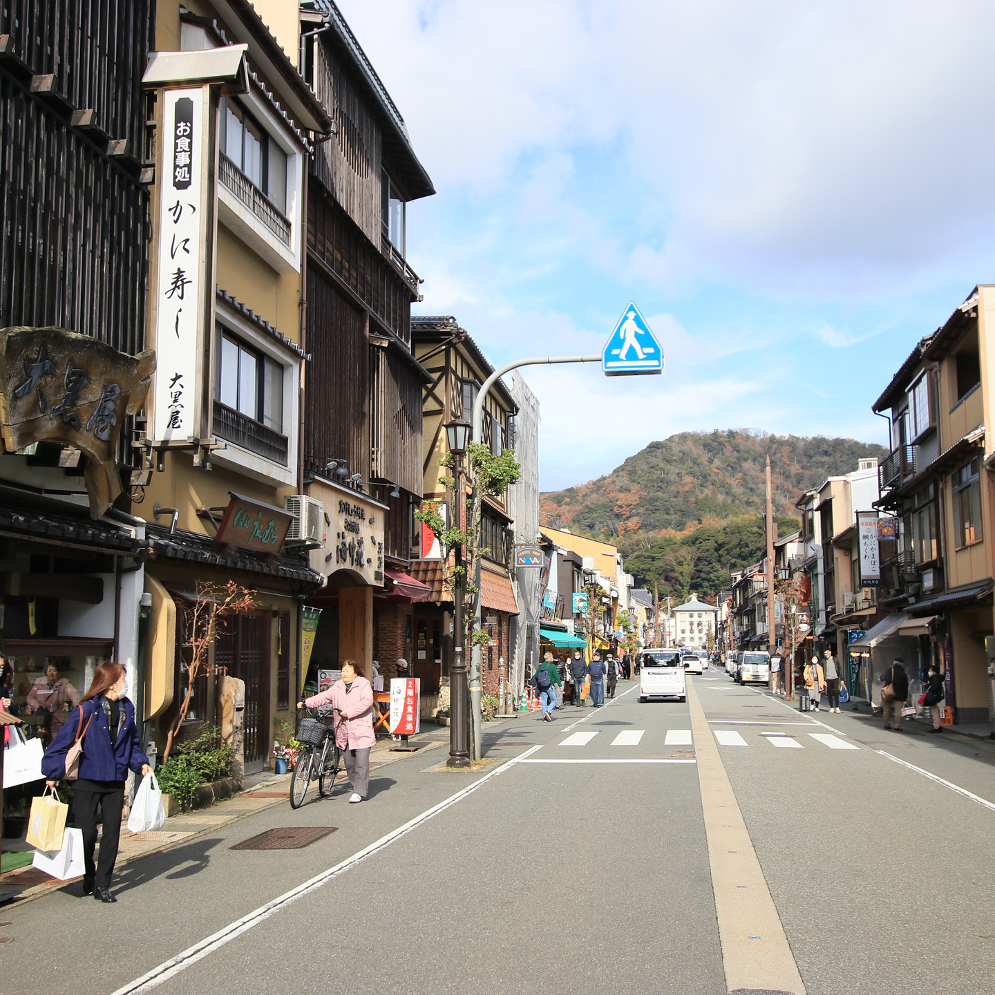 城崎温泉駅を出て、北向きに通りを歩いて300m→